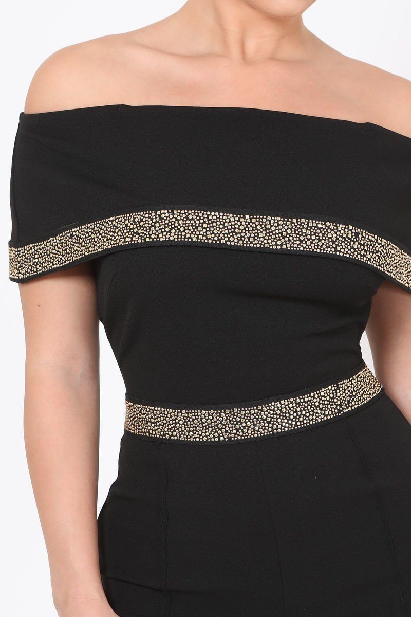 Black Denim Distressed Detail Raw Hem Cropped Bermuda Overall