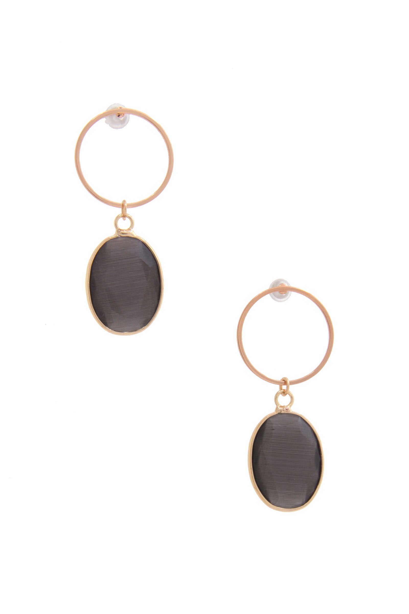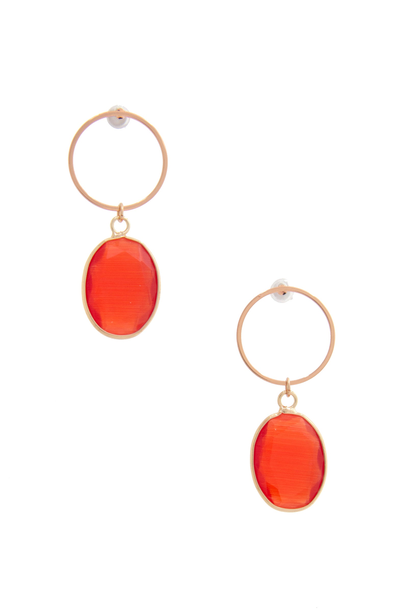 Round Metal Oval Gem Dangle Earring