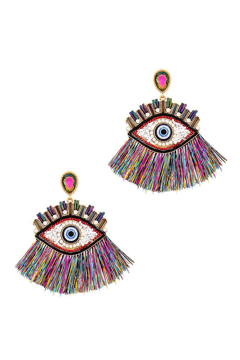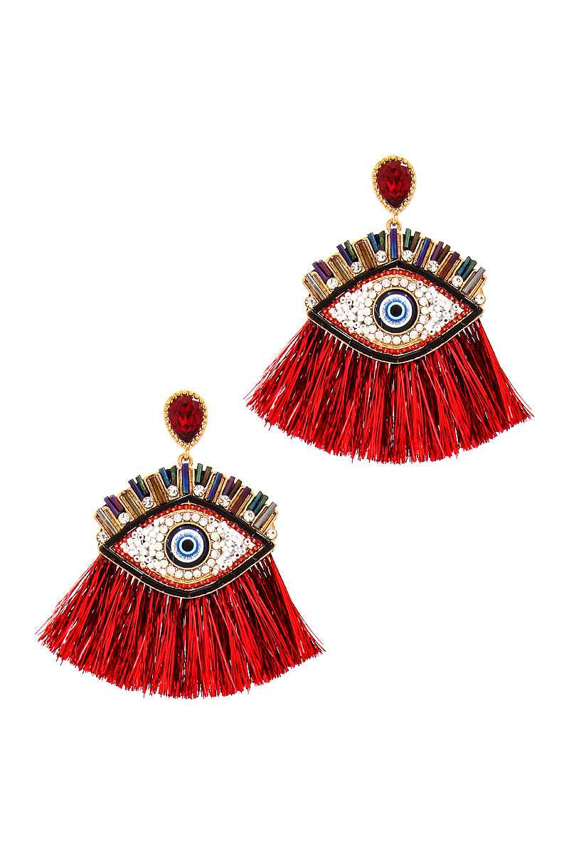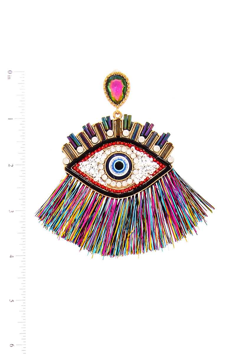 Hot Trendy Eye And Fan Tassel Drop Earring