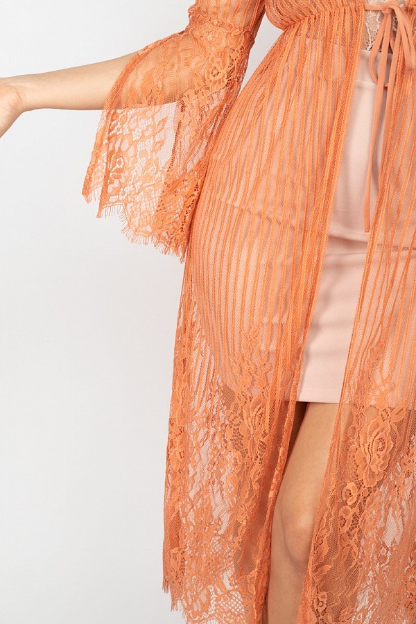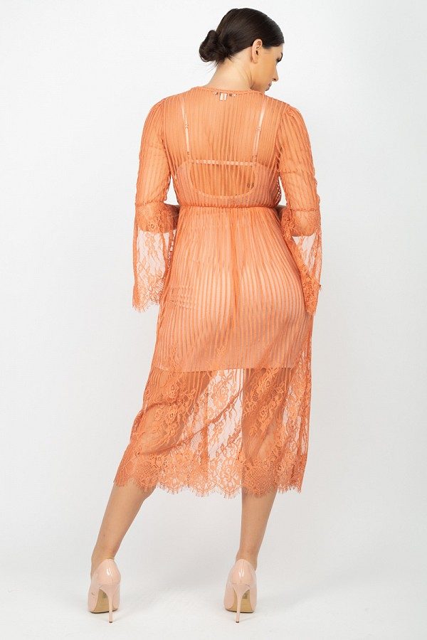 A Sheer, Chiffon Floral Lace Maxi Dress