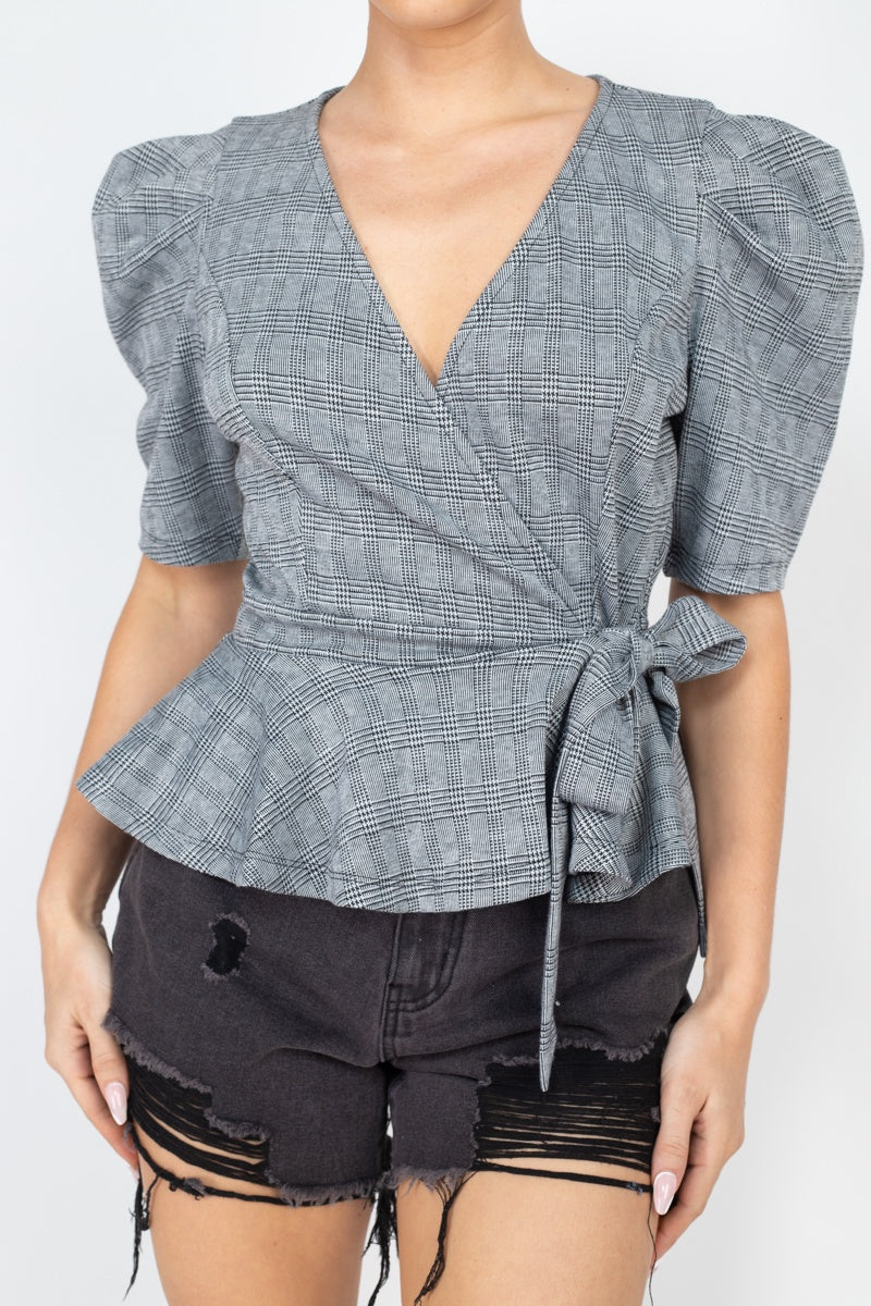 Plaid Front Wrap Design Top