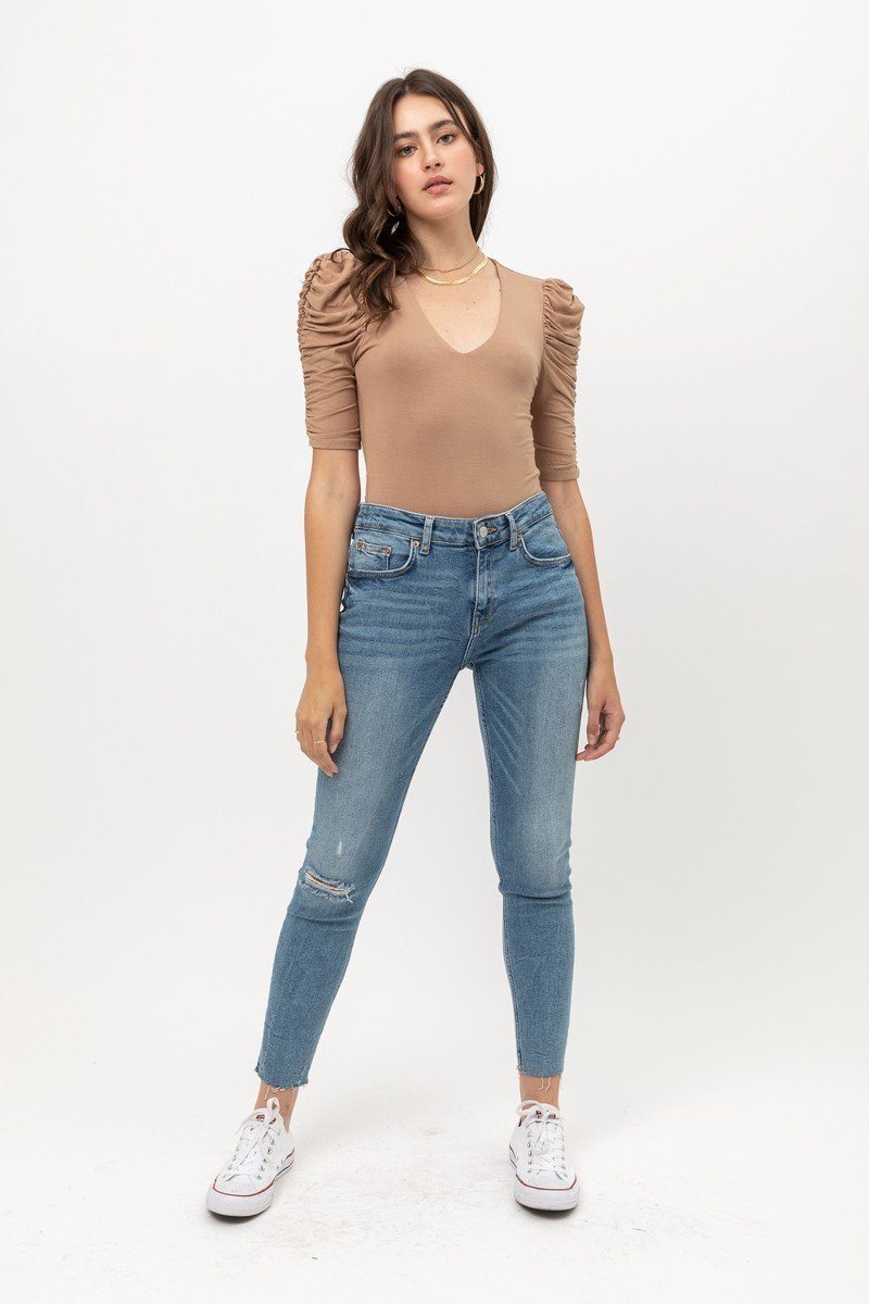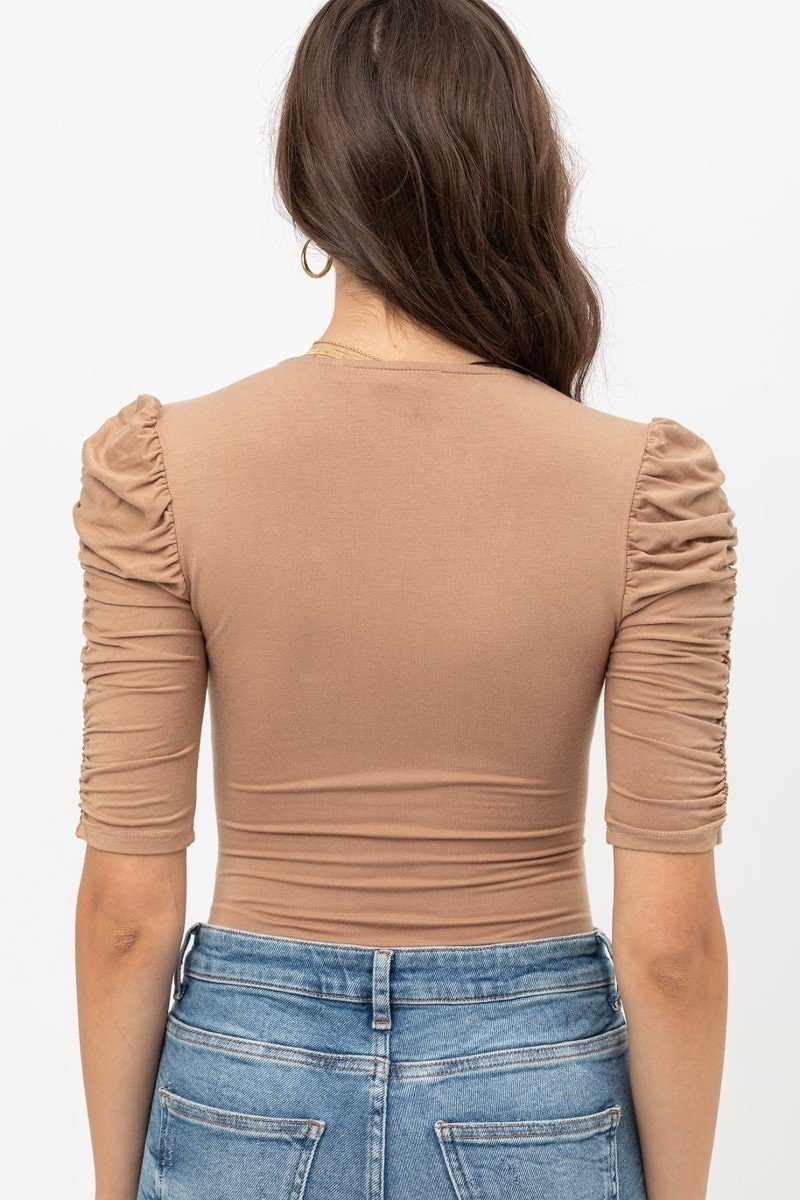 Sheered 3/4 Sleeve, V Neck Rayon Jersey Body Suit