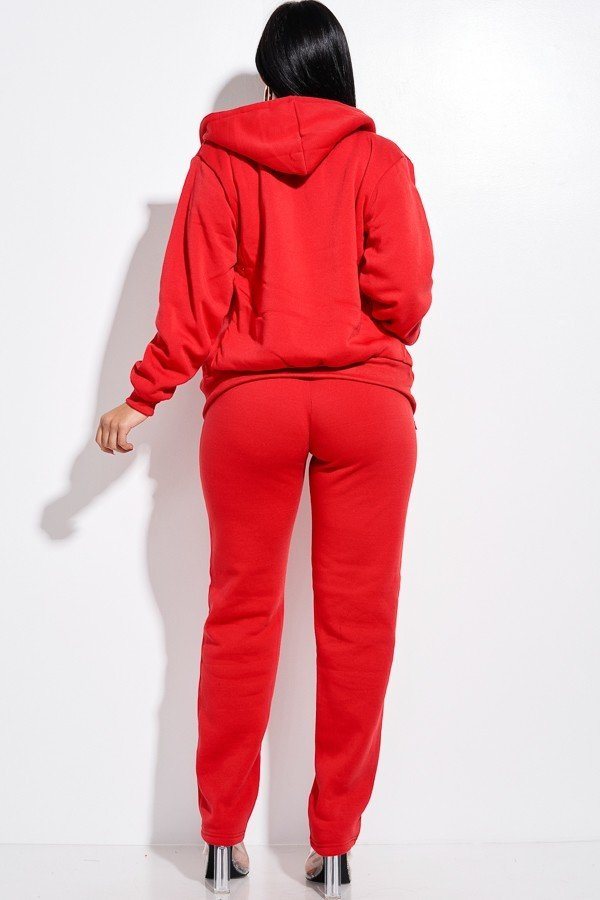 Solid French Terry Zip Front Faux Fur Lined Jacket And Pants 2 Piece Set