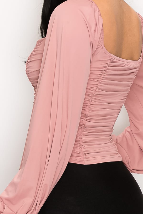 Ruched Sweetheart Neck Long Sleeve Top